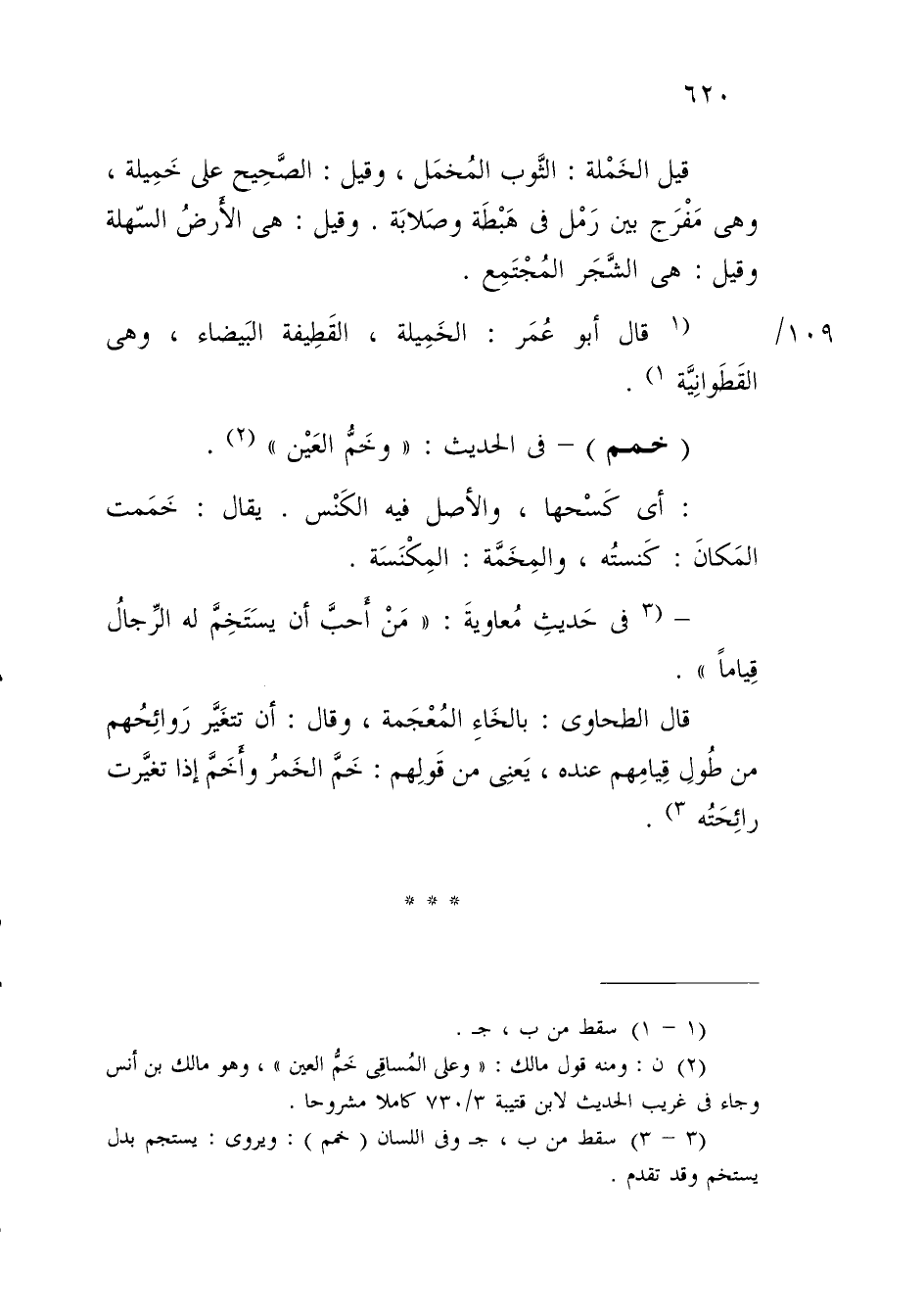 (¬2) ن: ومنه قول مالك: "وعلى المُساقِي خَمُّ العين"، وهو مالك بن أنس وجاء في غريب الحديث لابن قتيبة 3/ 730 كاملًا مشروحا.
