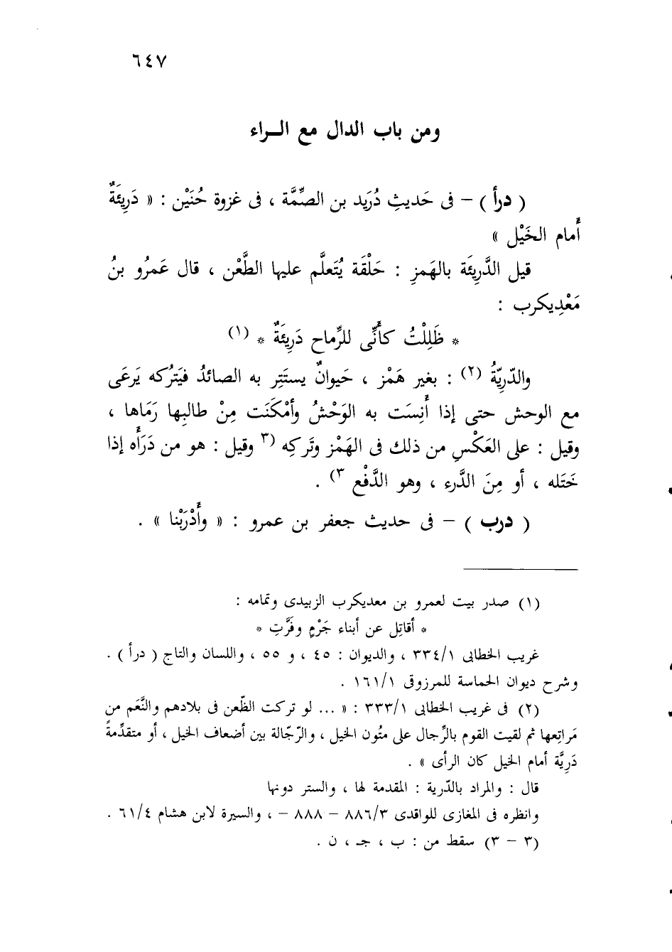 غريب الخطابي 1/ 334، والديوان: 45، و55، واللسان والتاج (درأ). وشرح ديوان الحماسة للمرزوقي 1/ 161.