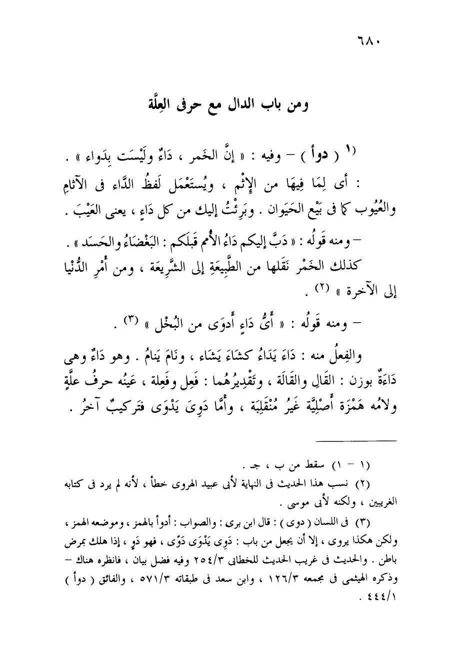 (¬3) في اللسان (دوى): قال ابن برى: والصواب: أدوأ بالهمز، وموضعه الهمز، ولكن هكذا يروى، إلا أن يجعل من باب: دوِى يَدْوَى, دَوّى، فهو دَوٍ، إذا هلك بمرض باطن. والحديث في غريب الحديث للخطابي 3/ 254 وفيه فضل بيان، فانظره هناك - وذكره الهيثمي في مجمعه 3/ 126، وابن سعد في طبقاته 3/ 571، والفائق (دوأ) 1/ 444.