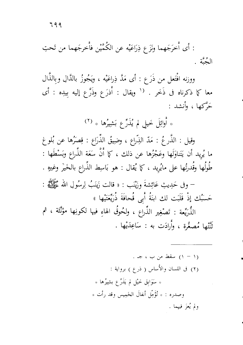 (¬2) في اللسان والأساس (ذرع) برواية: