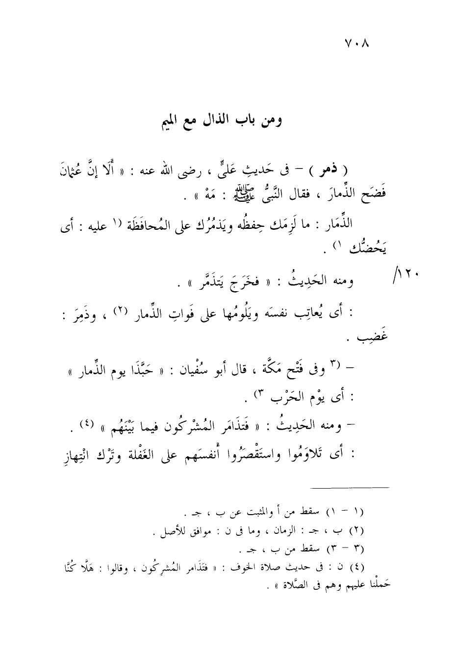 (¬4) ن: في حديث صلاة الخوف: "فتَذَامر المُشرِكُون، وقالوا: هَلَّا كُنَّا حَملْنا عليهم وهم في الصَّلاة".