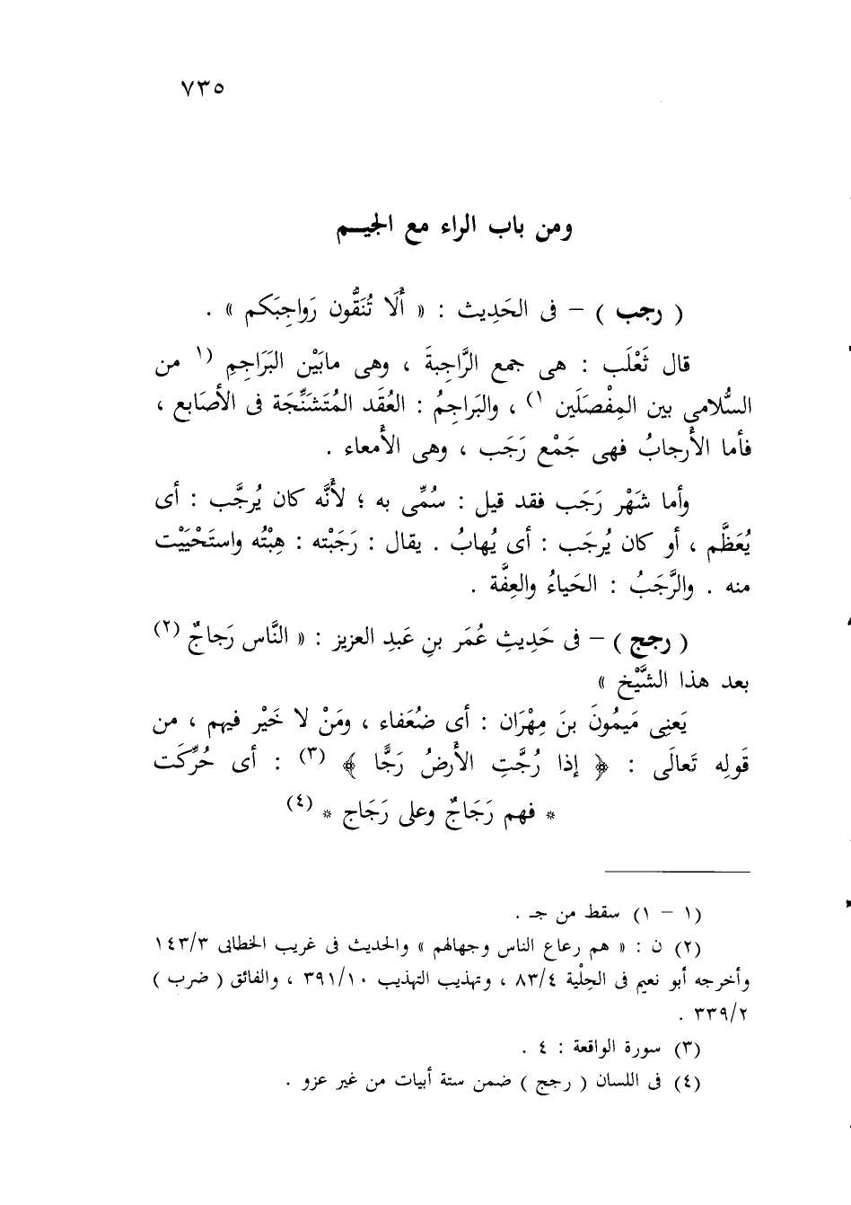(رجب) - في الحَدِيث: "ألا تُنَقُّون رَواجِبَكم".
