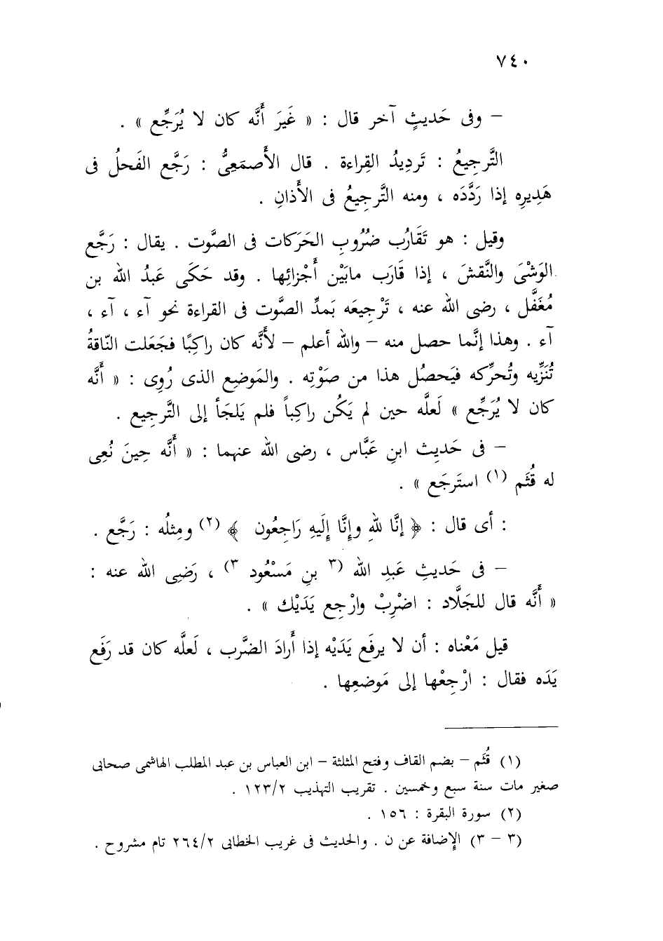 - وفي حَديثٍ آخر قال: "غَيرَ أَنَّه كان لا يُرَجِّع".