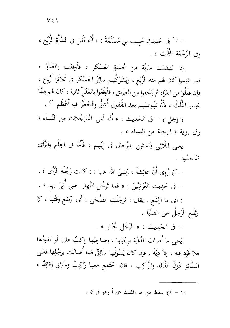 - (1 في حَدِيثِ حَبِيب بنِ مَسلَمَةَ: "أَنَّه نَفَّل في البَدْأَةِ الرُّبُع، وفي الرَّجْعَة الثُّلُث".