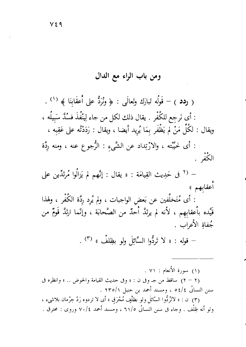 (ردد) - قَولُه تَبارَك وتَعالَى: {وَنُرَدُّ عَلَى أَعْقَابِنَا} (¬1).