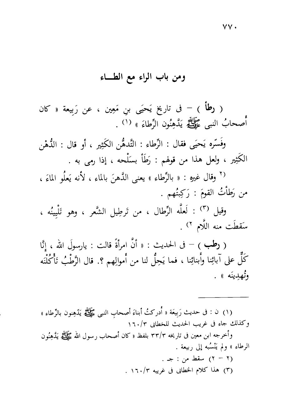 (¬1) ن: في حديث رَبِيعَة "أَدركتُ أبناءَ أصحابِ النبى - صلى الله عليه وسلم - يَدّهِنون بالرَّطاء" وكذلك جاء في غريب الحديث للخطابى 3/ 160