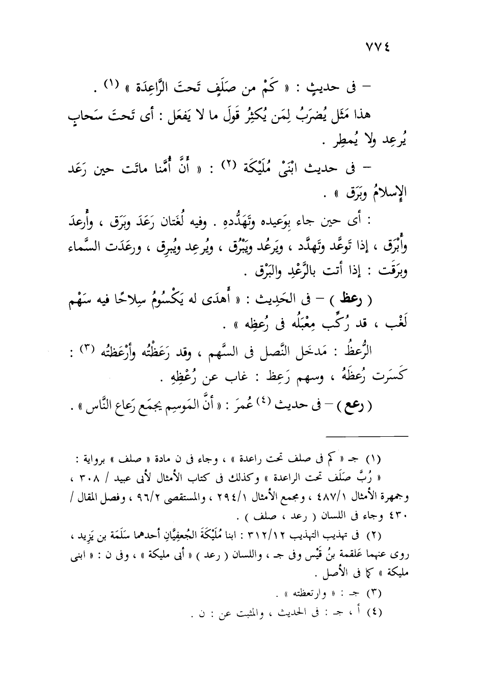 - في حديث ابْنَىْ مُلَيْكَة (¬2): "أَنَّ أُمَّنا ماتَت حين رَعَد الِإسلامُ وبَرَق".