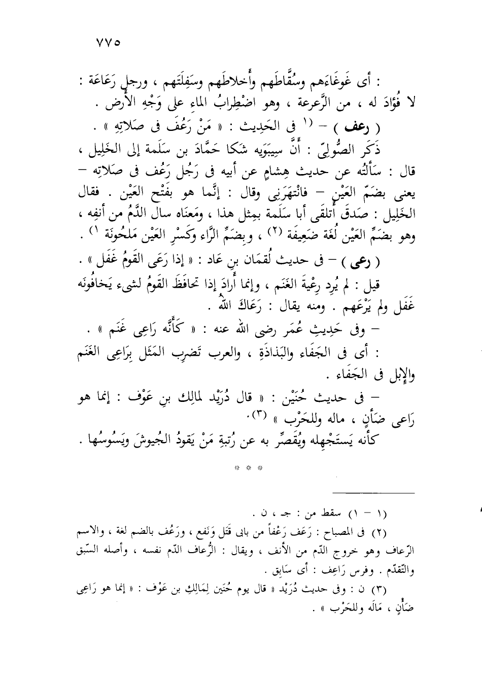 : أي غَوغَاءَهم وسُقَّاطَهم وأَخلاطَهم وسَفِلَتَهم، ورجل رَعَاعَة: لا فُؤادَ له، من الرَّعرعة، وهو اضْطِرابُ الماءِ عِلى وَجْهِ الأرض.