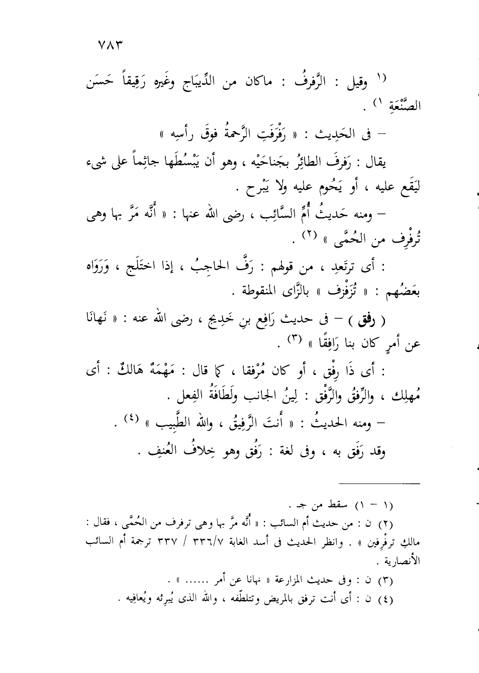 (¬2) ن: من حديث أم السائب: "أَنَّه مرَّ بها وهي ترفرف من الحُمَّى، فقال: مالكِ ترفْرِفين". وانظر الحديث في أسد الغابة 7/ 336 / 337 ترجمة أم السائب الأنصارية.