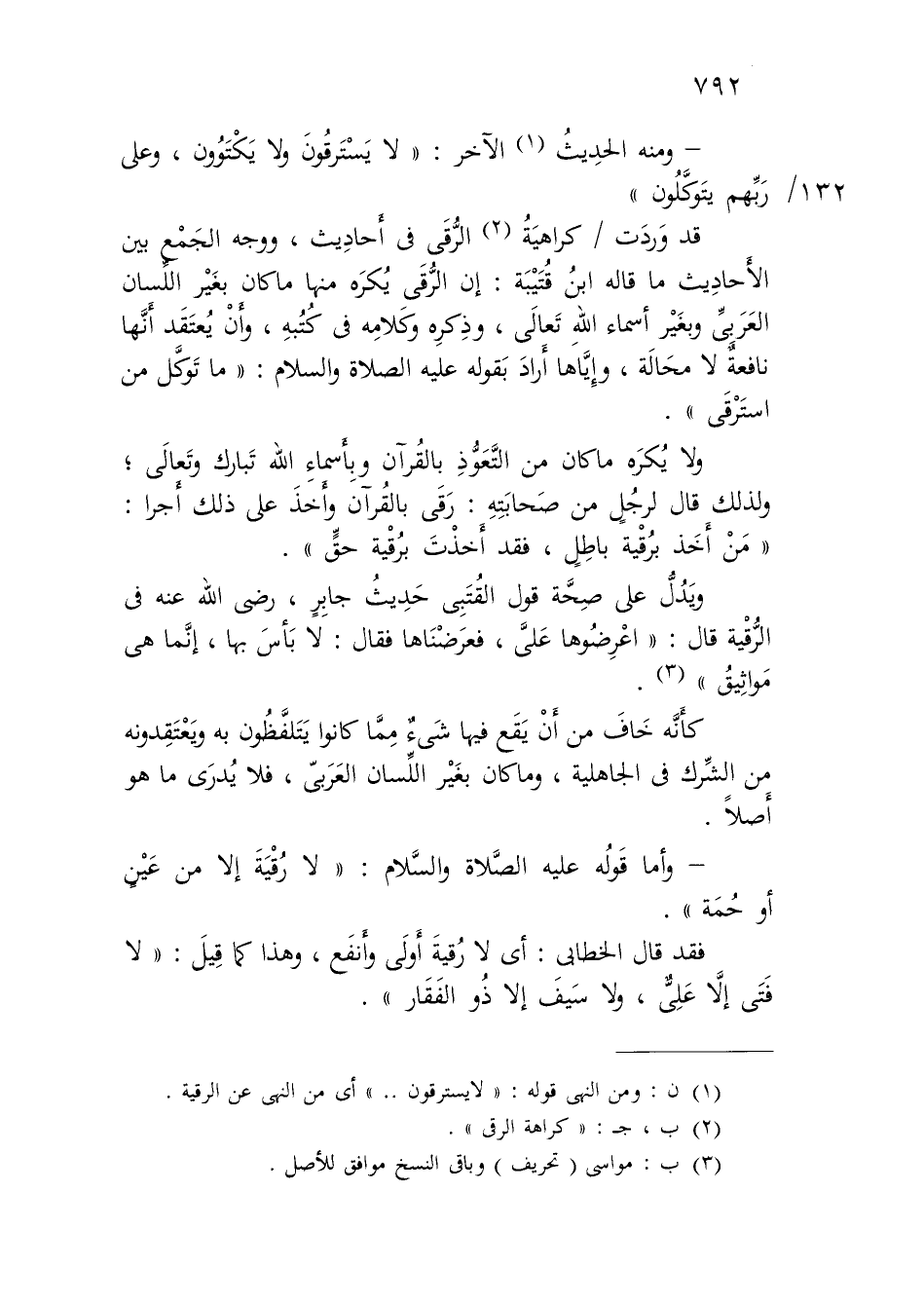 (¬1) ن: ومن النهى قوله: "لا يسترقون .. " أي من النهى عن الرقية.