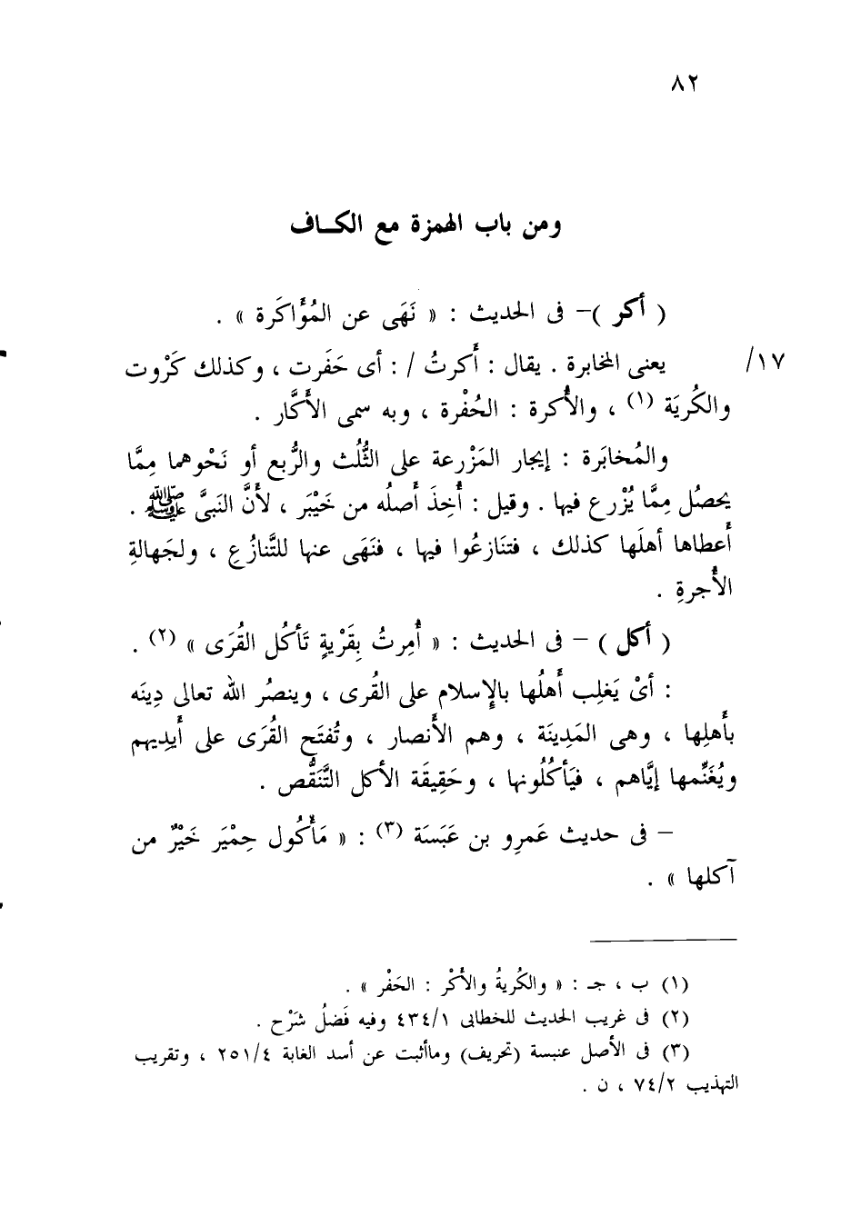 يعني المخابرة. يقال: أَكرتُ: أي حَفَرت، وكذلك كَرْوت والكُريَة (¬1)، والأُكرة: الحُفْرة، وبه سمى الأَكَّار.