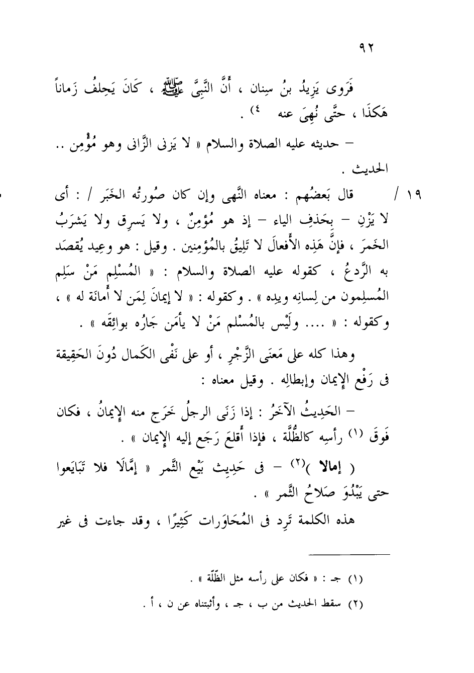 - حديثه عليه الصلاة والسلام "لا يَزنى الزّانى وهو مُؤْمِن .. الحديث.