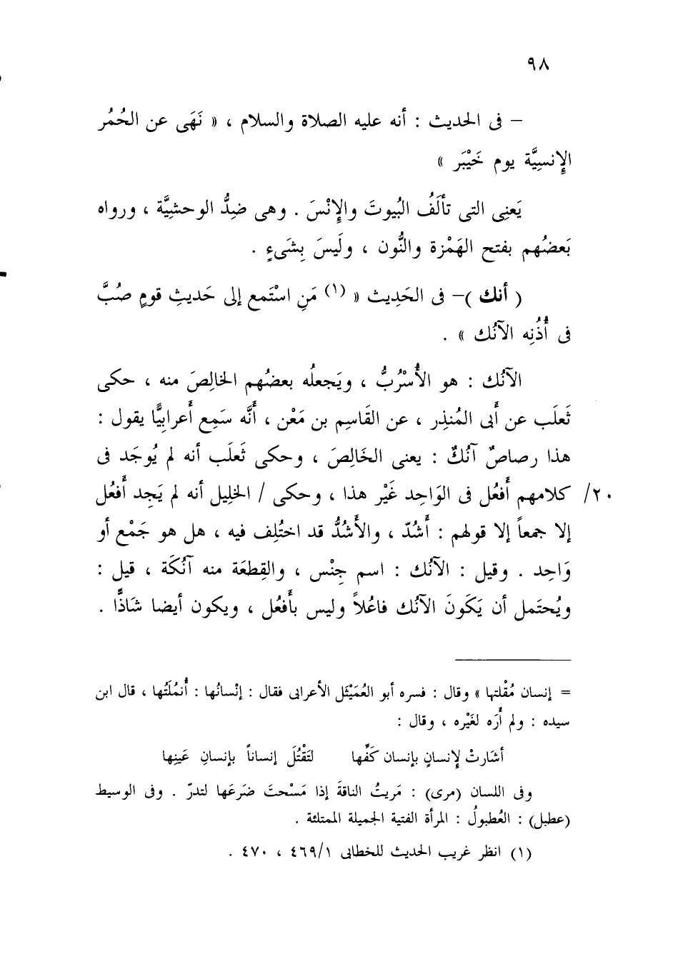 (¬1) انظر غريب الحديث للخطابى 1/ 469، 470.