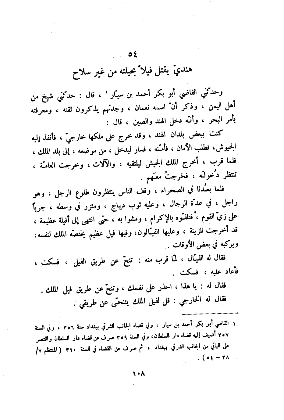 فقال له: يا هذا، احذر على نفسك، وتنحّ عن طريق فيل الملك.