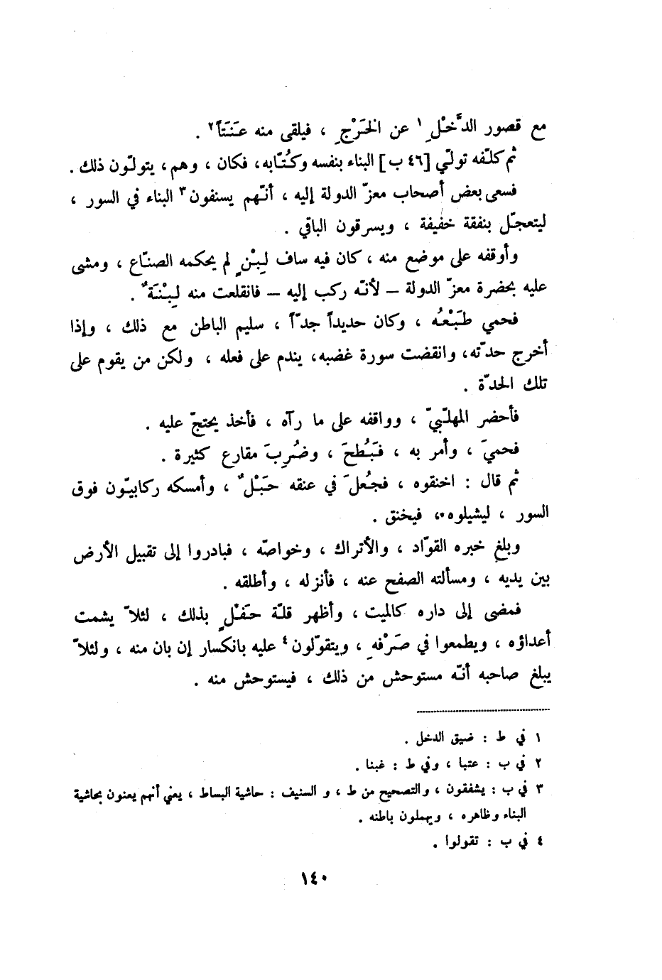 فسعى بعض أصحاب معزّ الدولة إليه، أنّهم يسنفون «3» البناء في السور، ليتعجّل بنفقة خفيفة، ويسرقون الباقي.
