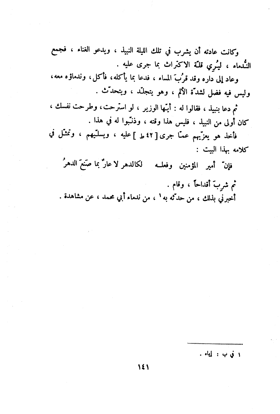 أخبرني بذلك، من حدّثه به «1» ، من ندماء أبي محمد، عن مشاهدة.