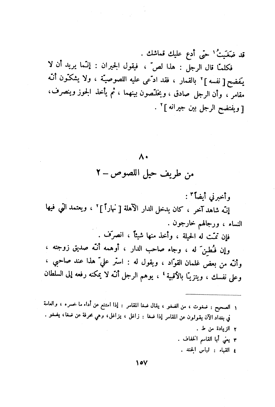 فكلمّا قال الرجل: هذا لصّ، فيقول الجيران: إنّما يريد أن لا يفضح [نفسه] «2» بالقمار، فقد ادّعى عليه اللصوصيّة، ولا يشكّون أنّه مقامر، وأن الرجل صادق، ويخلّصون بينهما، ثم يأخذ الجوز وينصرف، [ويفتضح الرجل بين جيرانه] «3» .