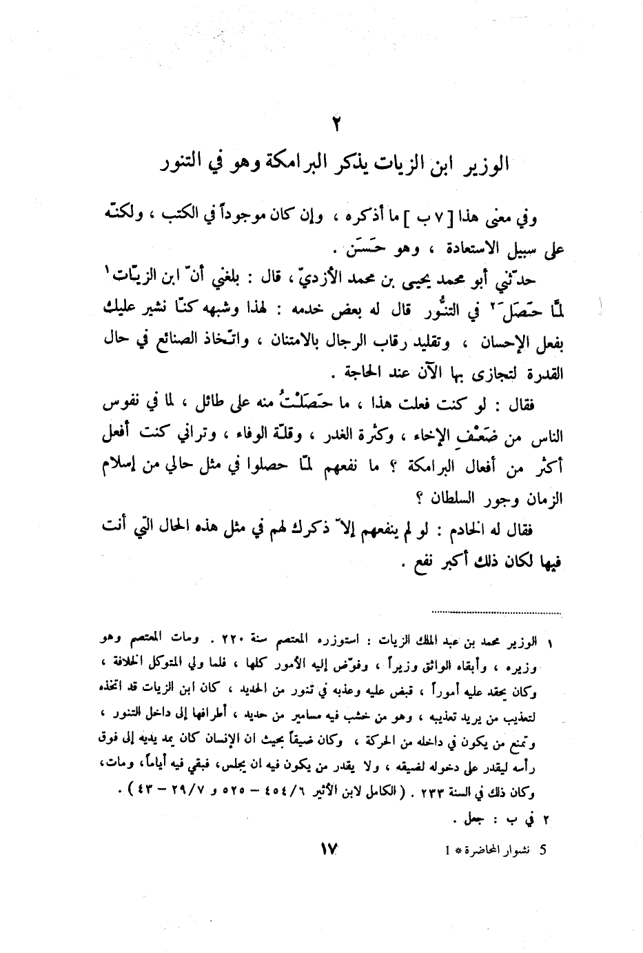 2 الوزير ابن الزيات يذكر البرامكة وهو في التنور