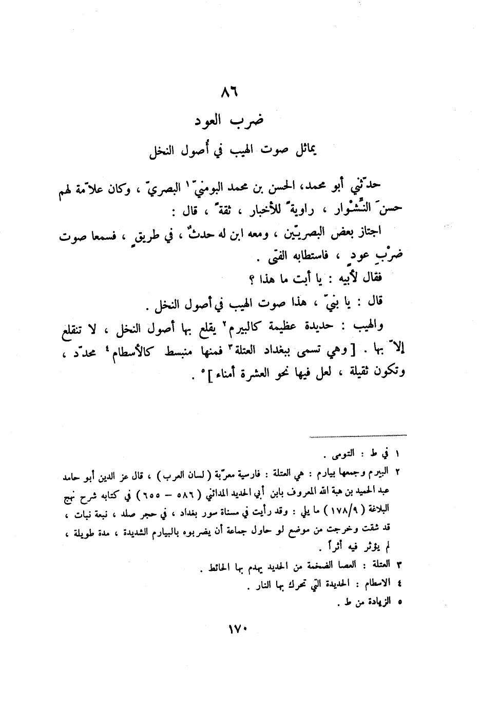 اجتاز بعض البصريّين، ومعه ابن له حدث، في طريق، فسمعا صوت ضرب عود، فاستطابه الفتى.