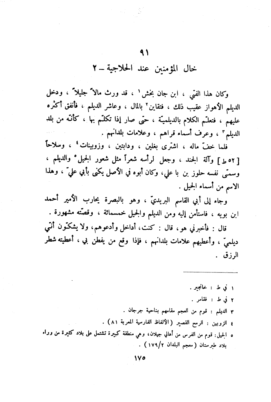 وكان هذا الفتي، ابن جان بخش «1» ، قد ورث مالا جليلا، ودخل الديلم الأهواز عقيب ذلك، فتقاين «2» بالمال، وعاشر الديلم، فأنفق أكثره عليهم، فتعلّم الكلام بالديلميّة، حتى صار إذا تكلّم بها، كأنّه من بلد الديلم «3» ، وعرف أسماء قراهم، وعلامات بلدانهم.