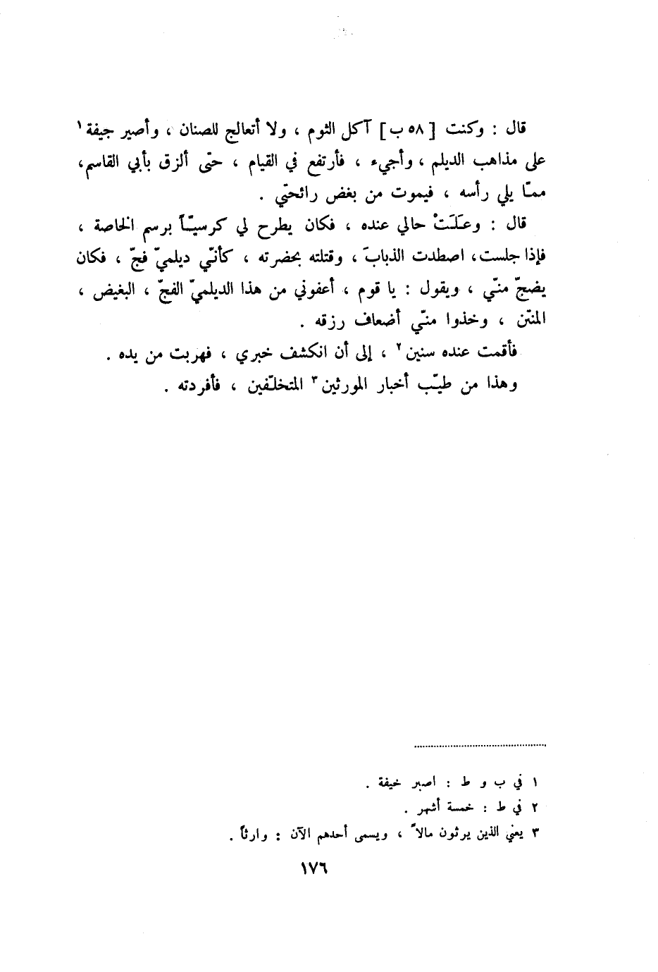 وهذا من طيّب أخبار المورثين «3» المتخلّفين، فأفردته.