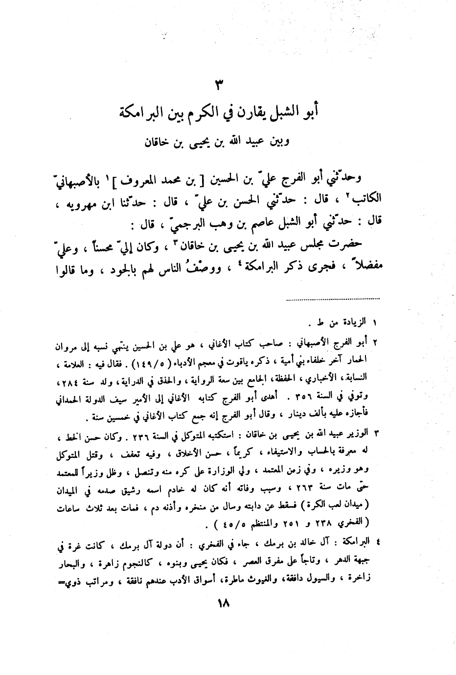 3 أبو الشبل يقارن في الكرم بين البرامكة وبين عبيد الله بن يحيى بن خاقان
