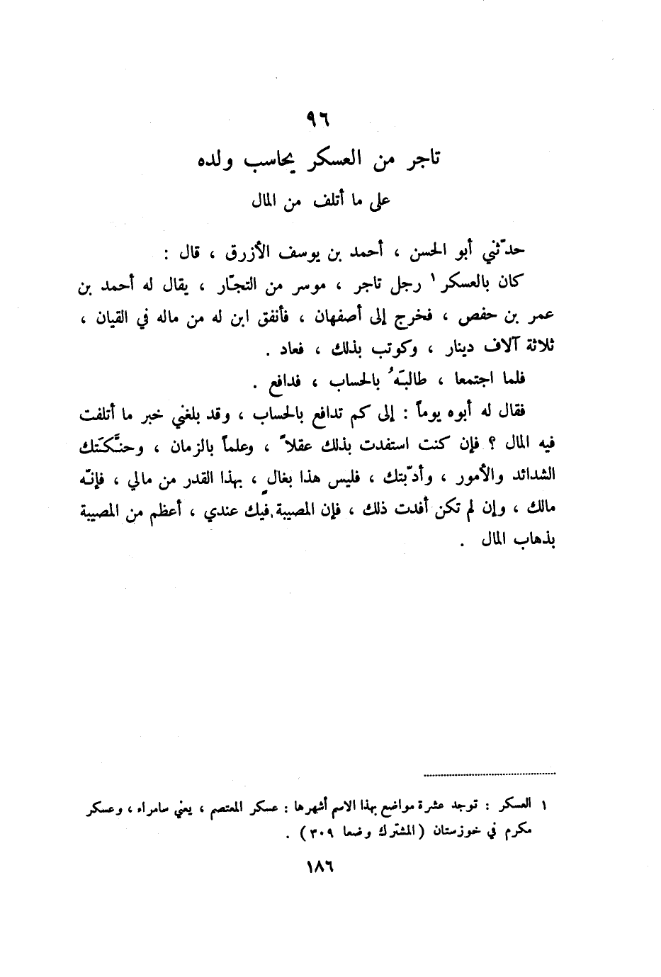 96 تاجر من العسكر يحاسب ولده على ما أتلف من المال