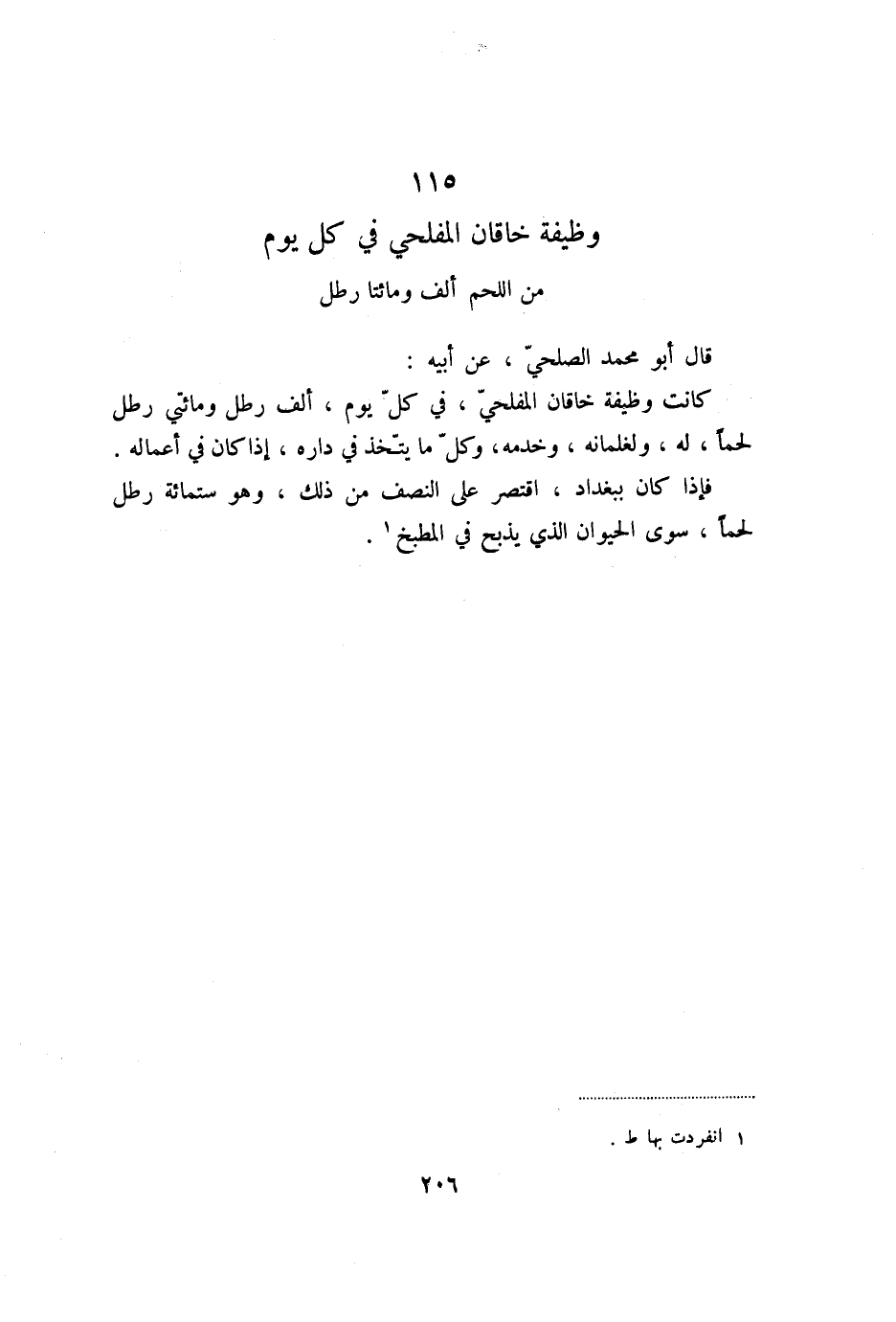 115 وظيفة خاقان المفلحي في كل يوم من اللحم ألف ومائتا رطل