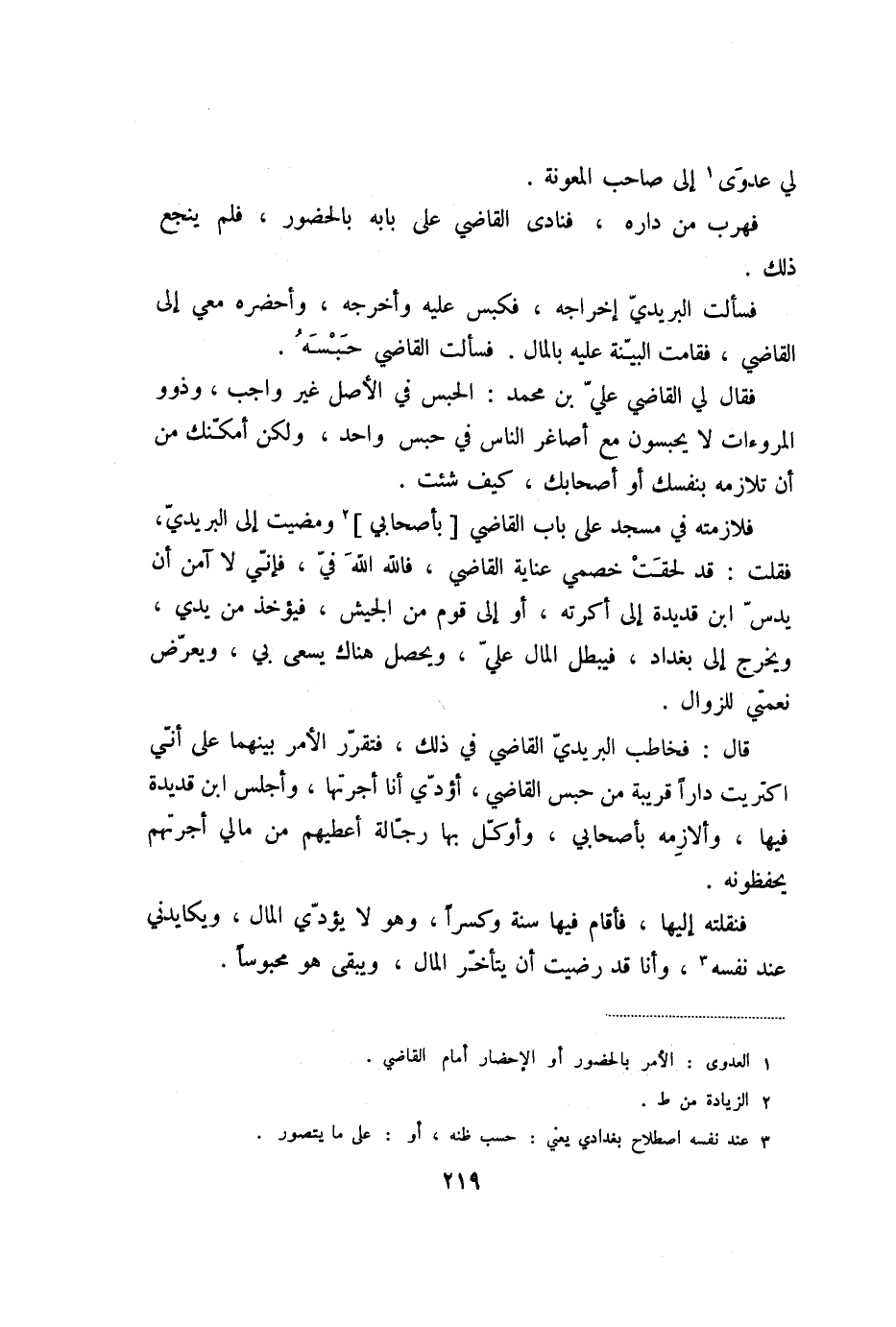 فسألت البريديّ إخراجه، فكبس عليه وأخرجه، وأحضره معي إلى القاضي، فقامت البيّنة عليه بالمال. فسألت القاضي حبسه.