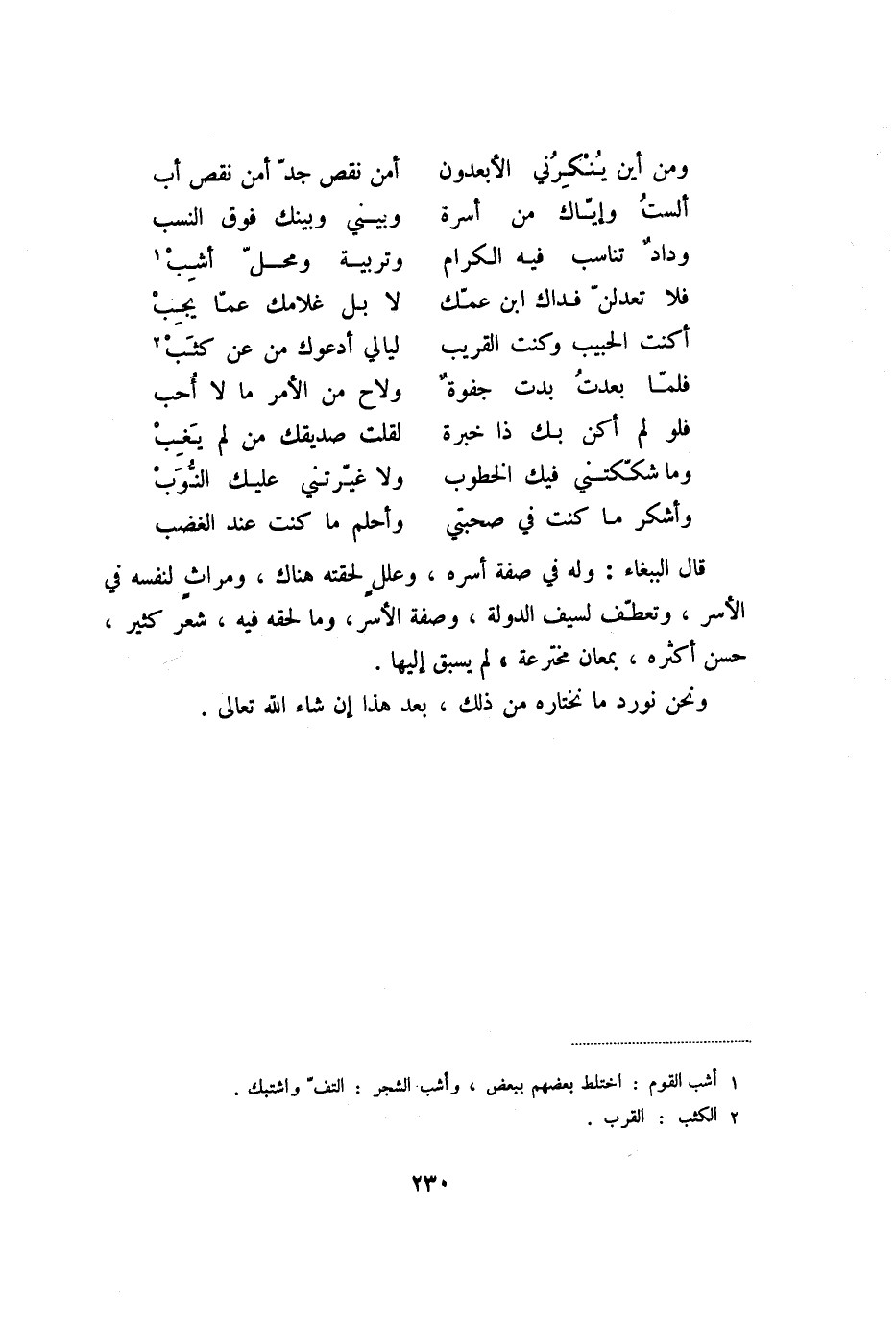 ألست وإيّاك من أسرة ... وبيني وبينك فوق النسب