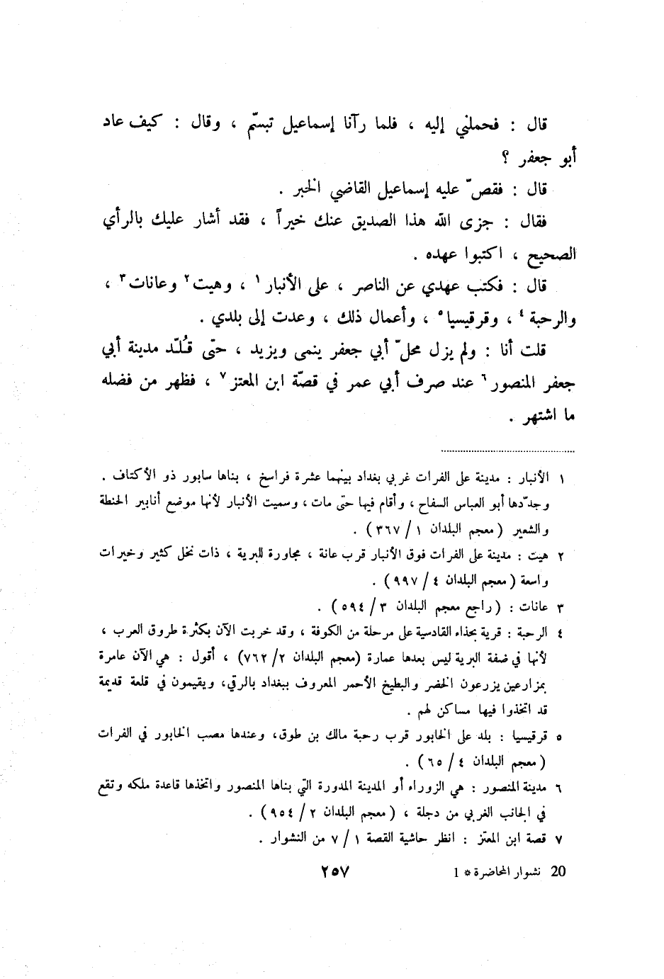 قلت أنا: ولم يزل محلّ أبي جعفر ينمى ويزيد، حتى قلّد مدينة أبي جعفر المنصور «6» عند صرف أبي عمر في قصّة ابن المعتز «7» ، فظهر من فضله ما اشتهر.