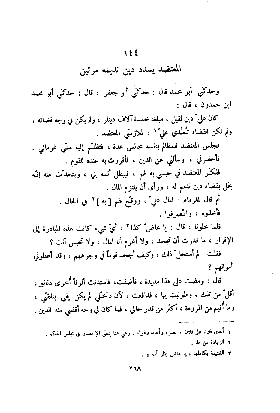 144 المعتضد يسدد دين نديمه مرتين