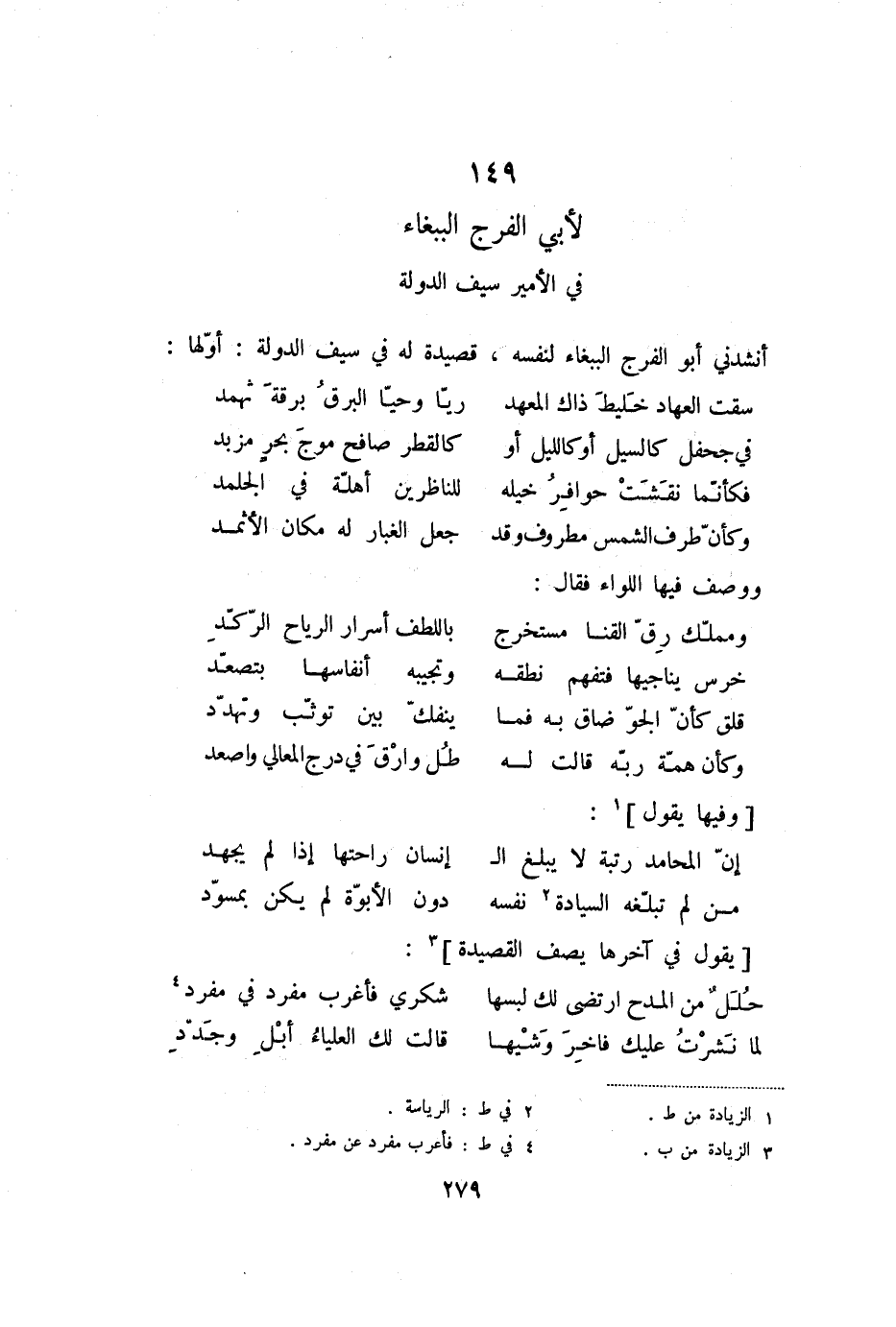149 لأبي الفرج الببغاء في الأمير سيف الدولة