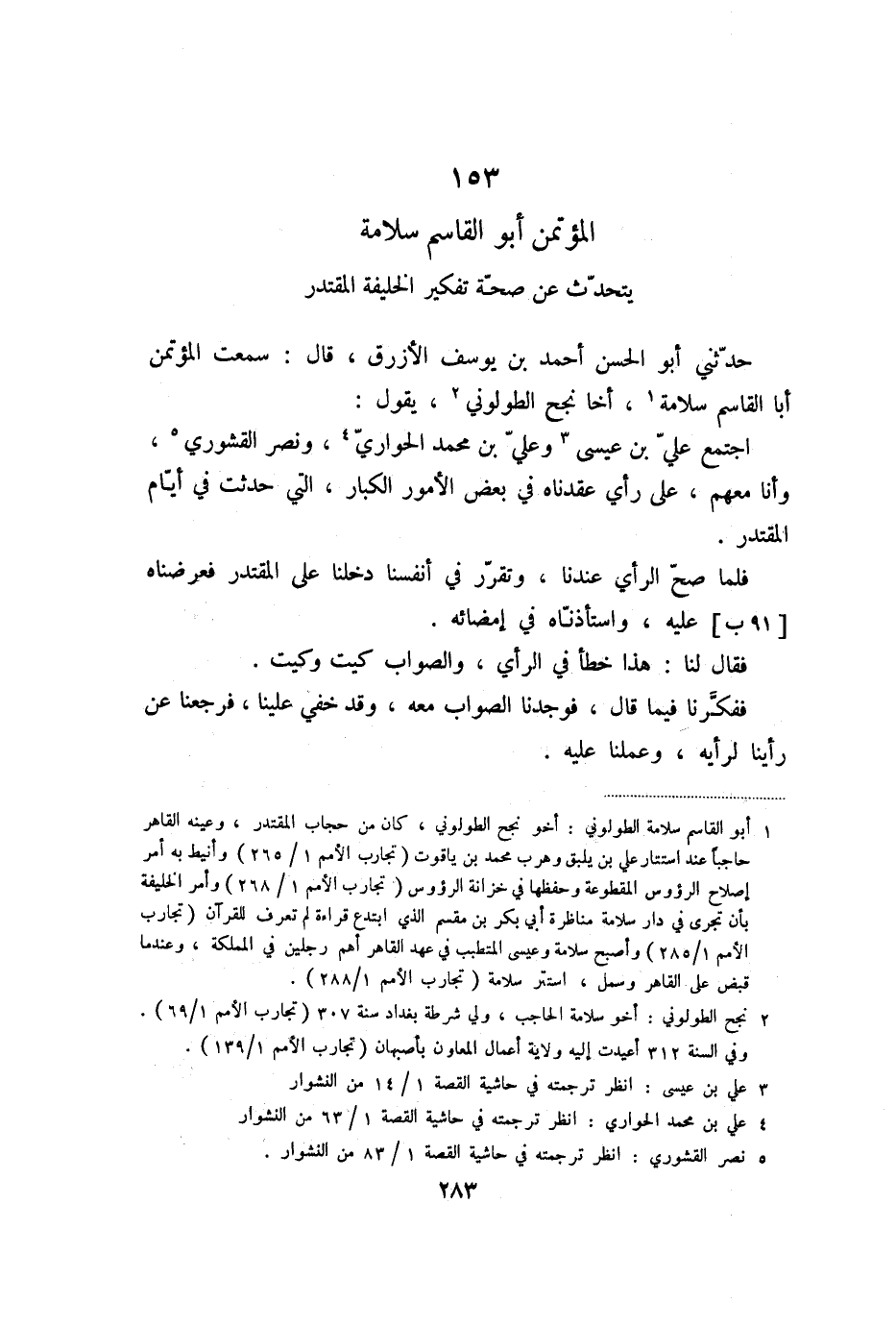 153 المؤتمن أبو القاسم سلامة يتحدّث عن صحّة تفكير الخليفة المقتدر
