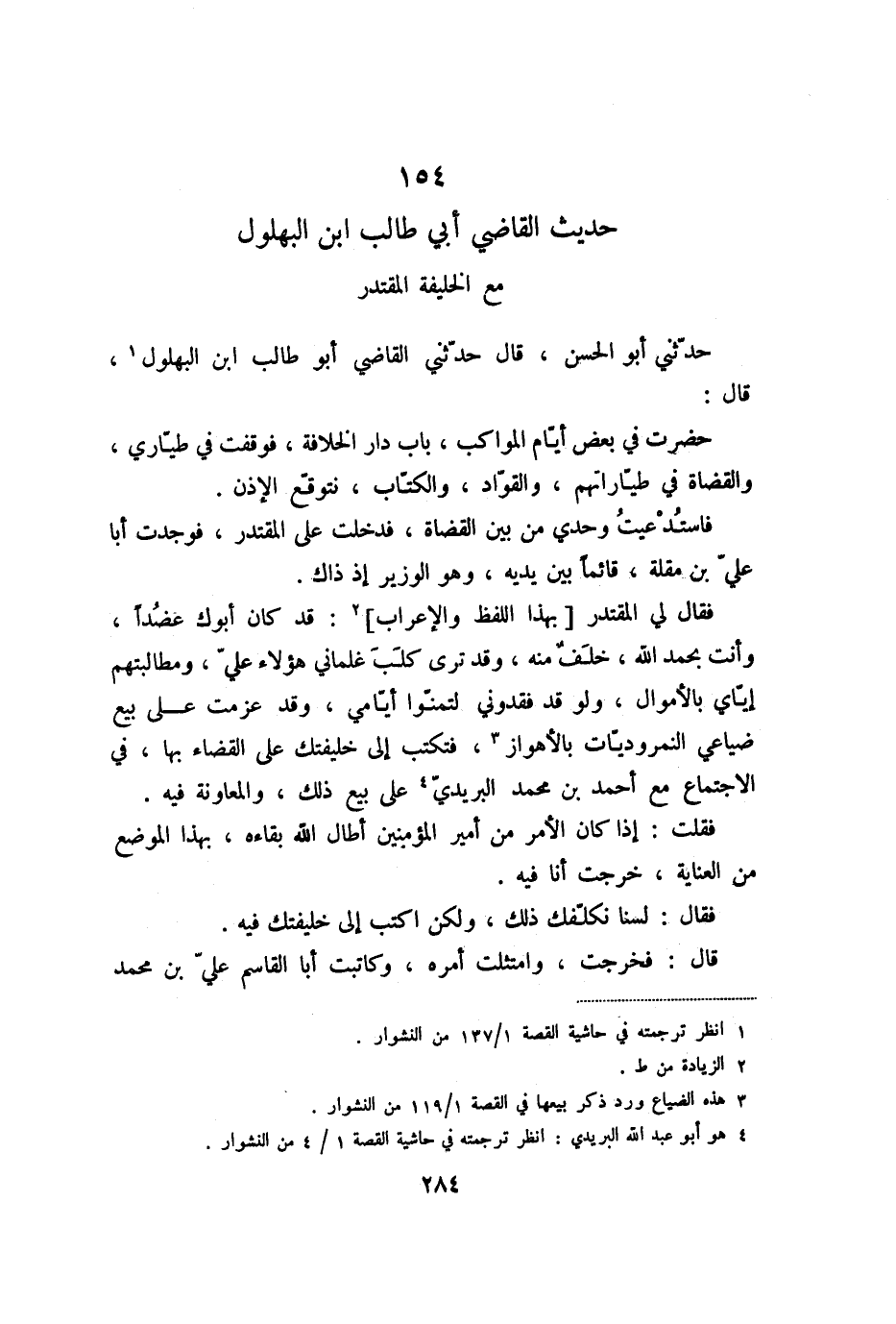 154 حديث القاضي أبي طالب ابن البهلول مع الخليفة المقتدر
