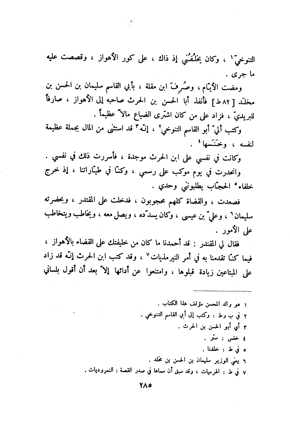 التنوخيّ «1» ، وكان يخلفني إذ ذاك، على كور الأهواز، وقصصت عليه ما جرى.