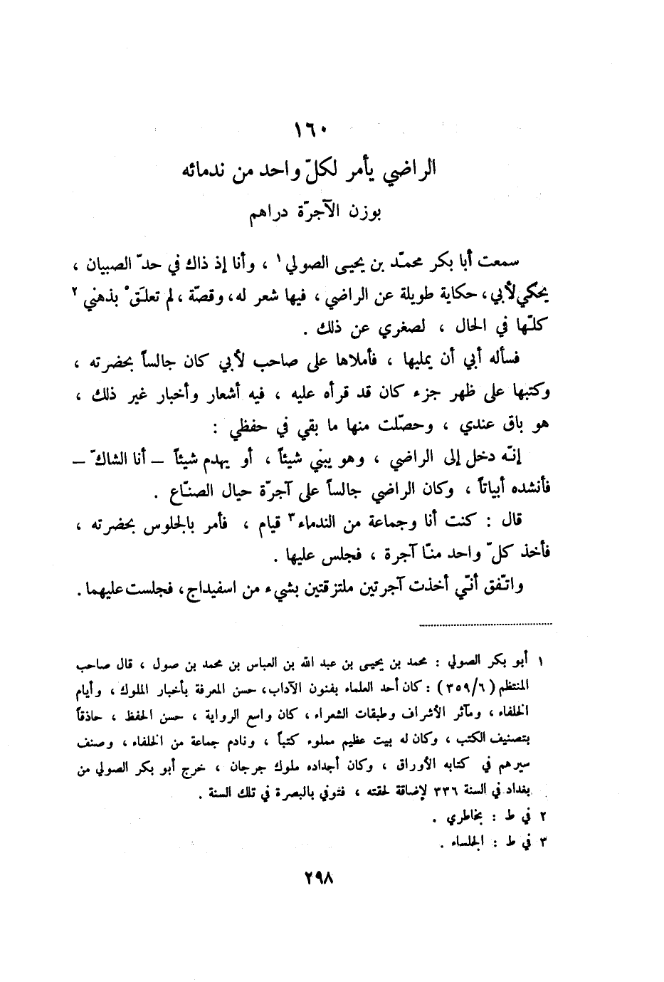 160 الراضي يأمر لكلّ واحد من ندمائه بوزن الآجرّة دراهم