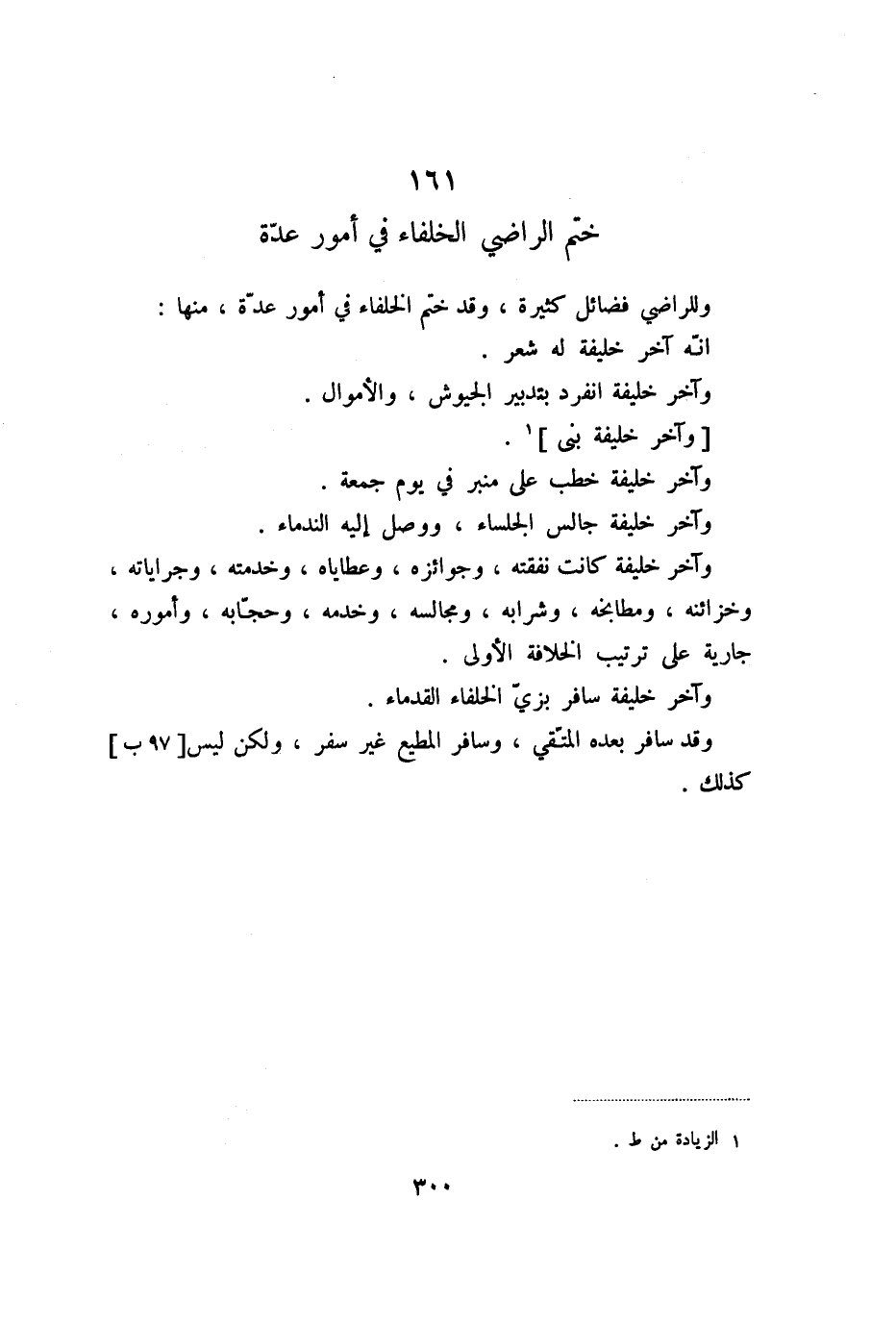 وقد سافر بعده المتّقي، وسافر المطيع غير سفر، ولكن ليس [97 ب] كذلك.