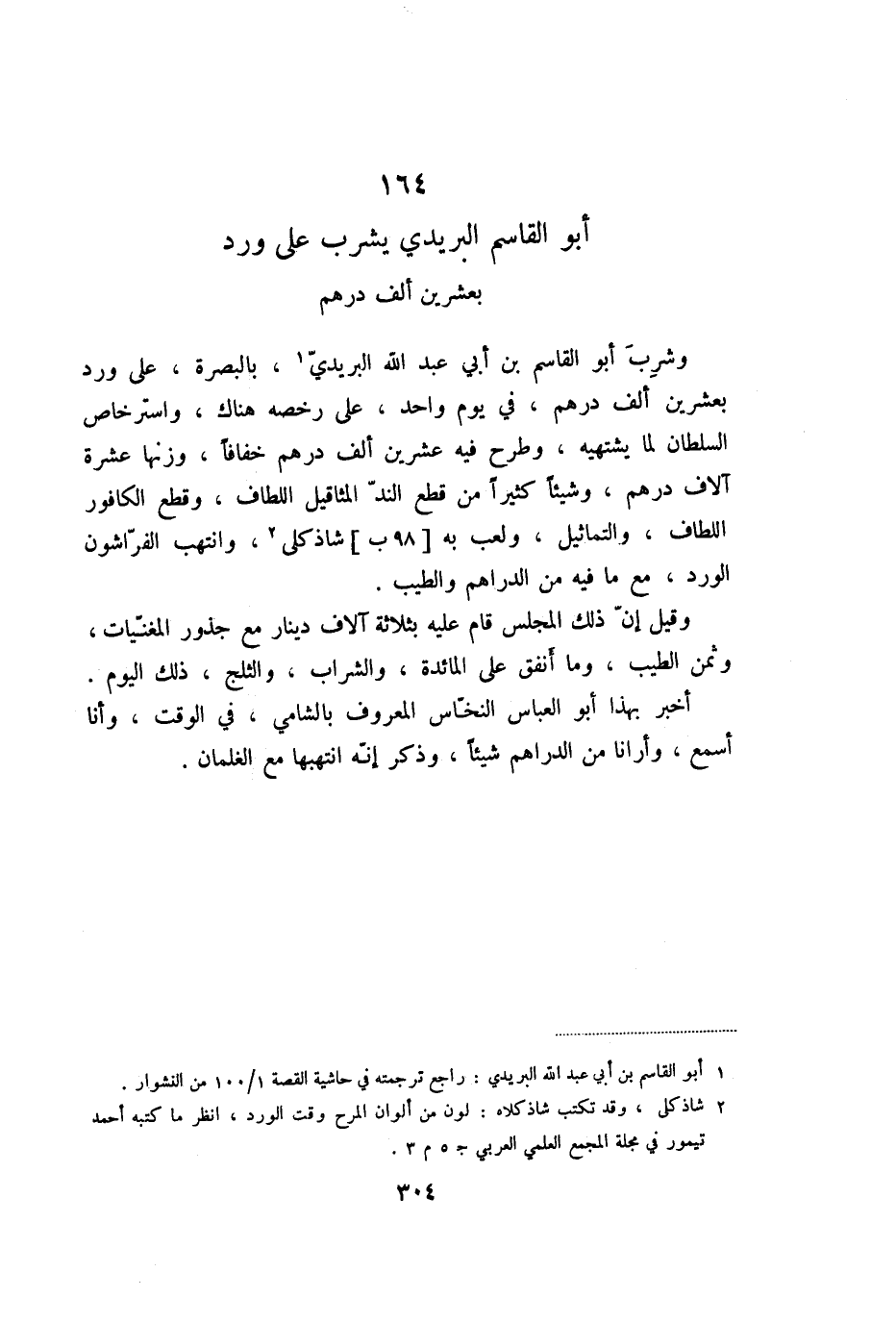 164 أبو القاسم البريدي يشرب على ورد بعشرين ألف درهم