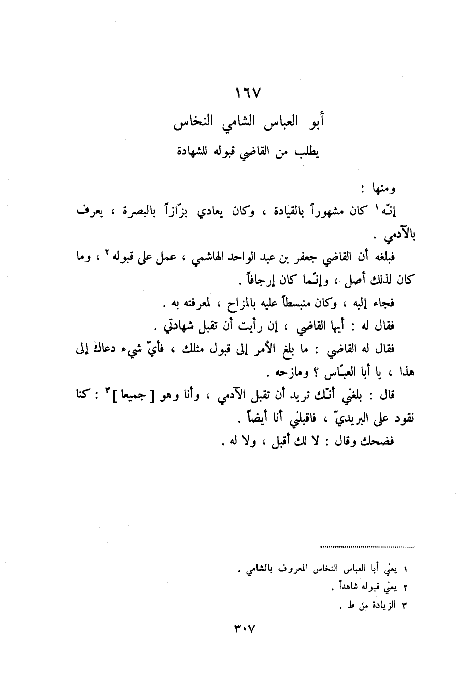 167 أبو العباس الشامي النخاس يطلب من القاضي قبوله للشهادة
