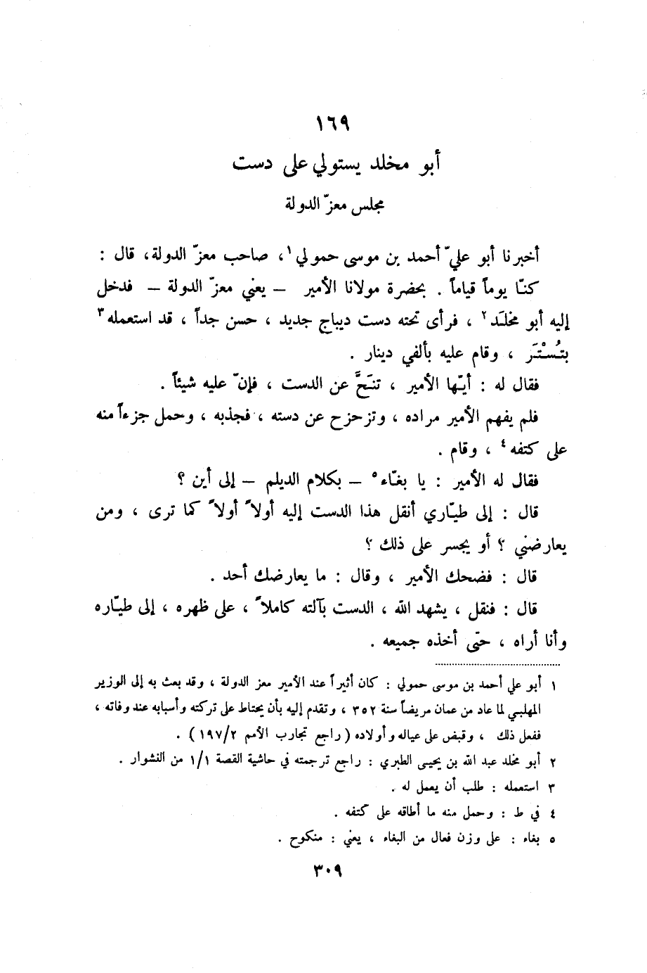 169 أبو مخلد يستولي على دست مجلس معزّ الدولة