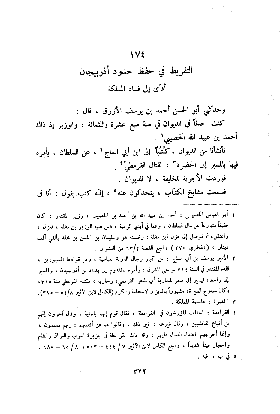 174 التفريط في حفظ حدود أذربيجان أدّى إلى فساد المملكة