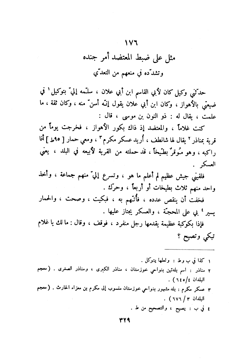 176 مثل على ضبط المعتضد أمر جنده وتشدّده في منعهم من التعدّي