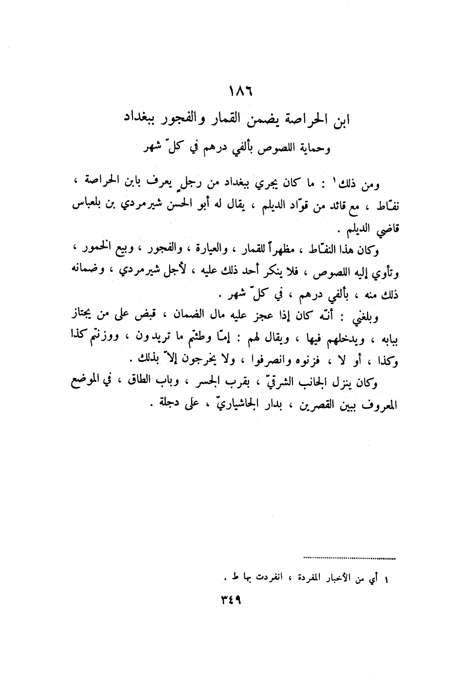 186 ابن الحراصة يضمن القمار والفجور ببغداد وحماية اللصوص بألفي درهم في كلّ شهر