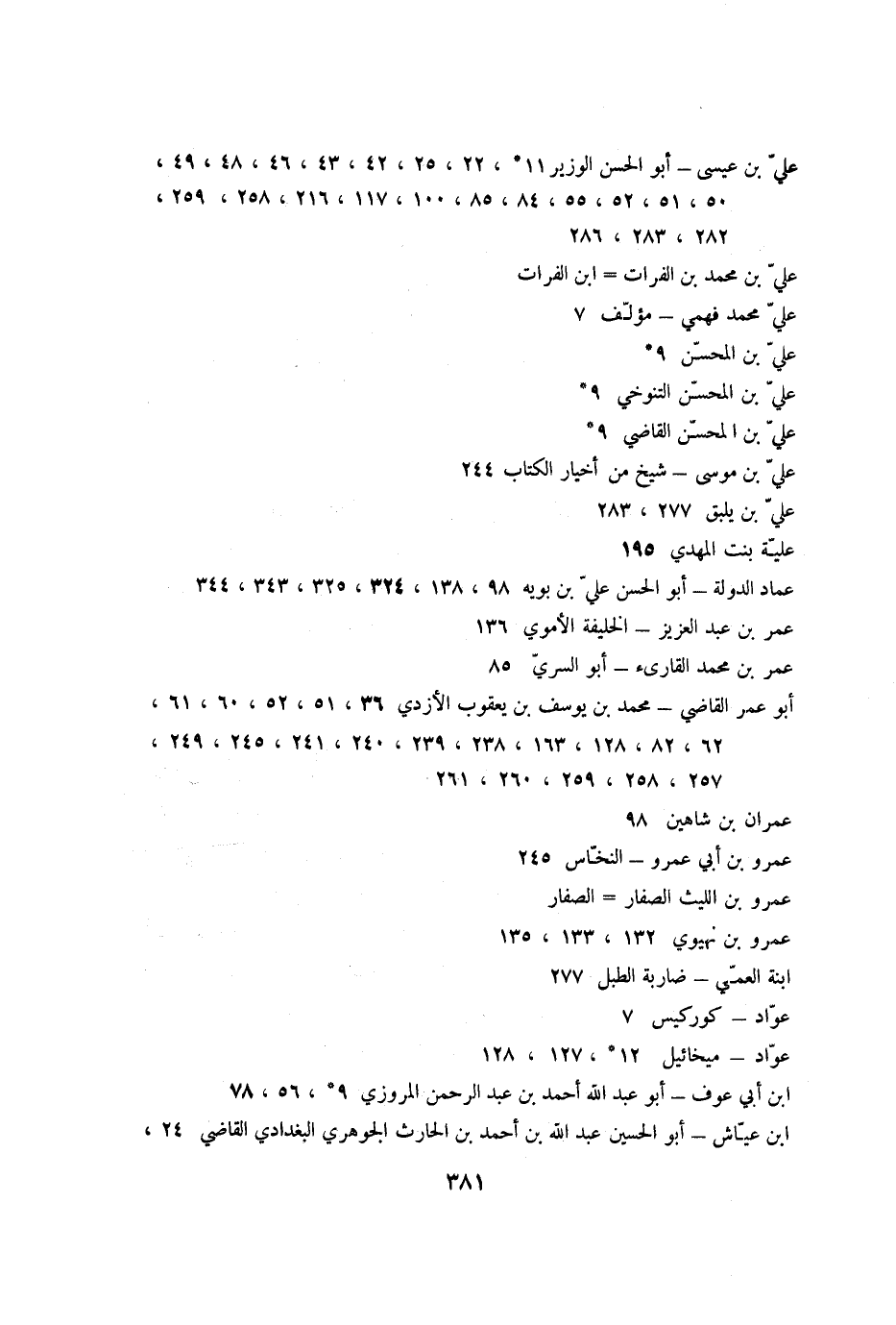 عليّ بن عيسى- أبو الحسن الوزير 11، 22، 25، 42، 43، 46، 48، 49، 50، 51، 52، 55، 84، 85، 100، 117، 216، 258، 259، 282، 283، 286