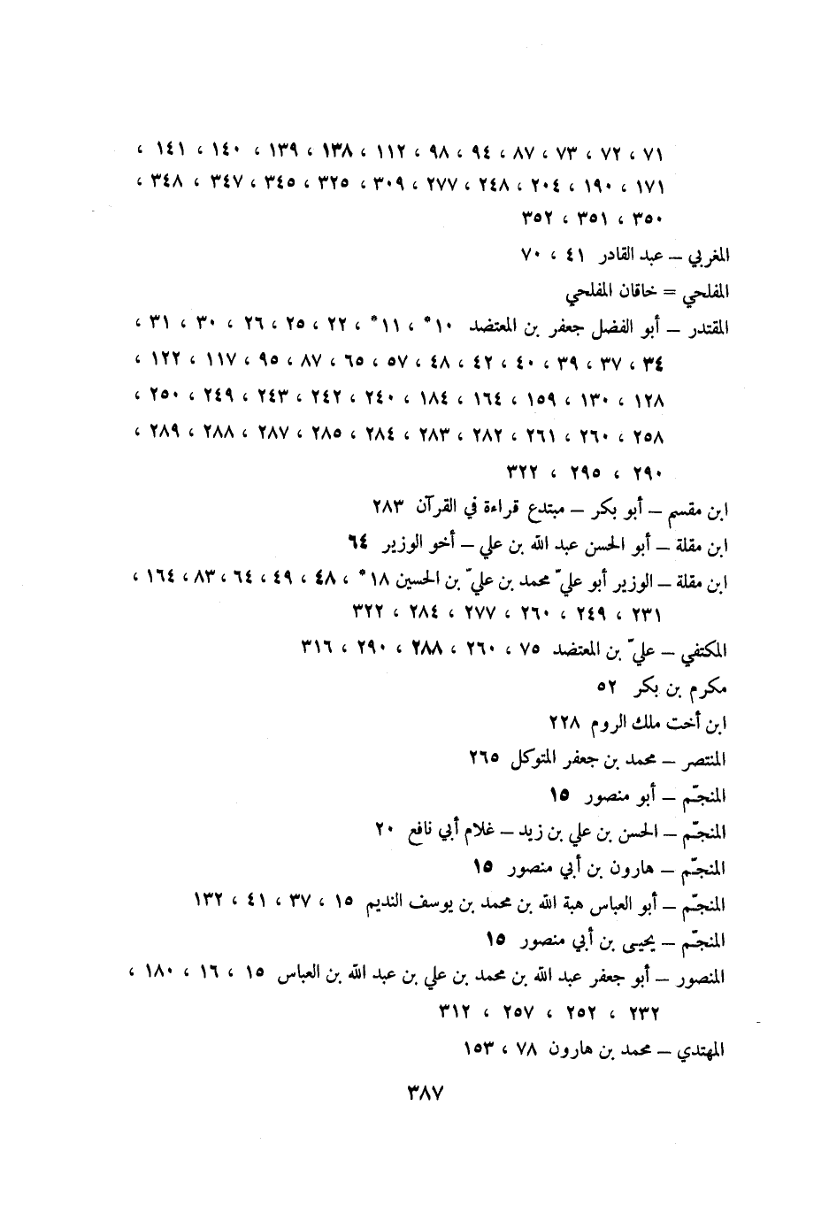 المقتدر- أبو الفضل جعفر بن المعتضد 10، 11، 22، 25، 26، 30، 31، 34، 37، 39، 40، 42، 48، 57، 65، 87، 95، 117، 122، 128، 130، 159، 164، 184، 240، 242، 243، 249، 250، 258، 260، 261، 282، 283، 284، 285، 287، 288، 289، 290، 295، 322