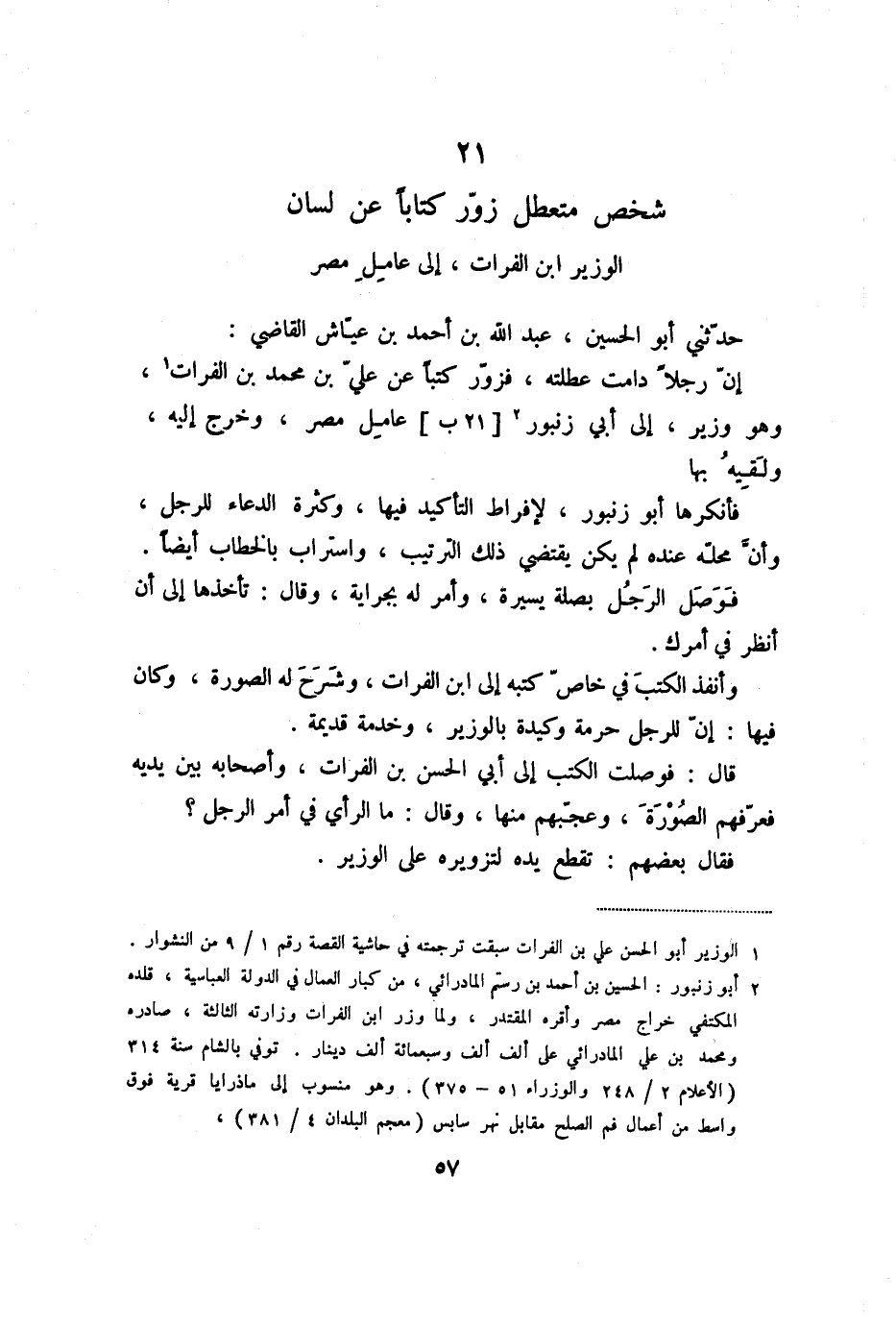 21 شخص متعطل زوّر كتابا عن لسان الوزير ابن الفرات، إلى عامل مصر