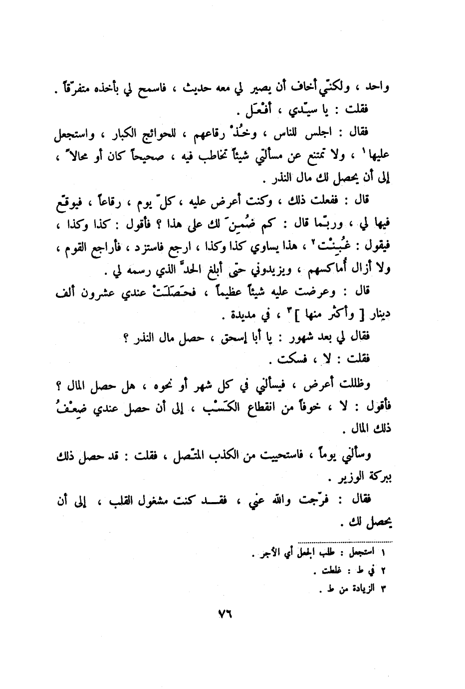 وسألني يوما، فاستحييت من الكذب المتّصل، فقلت: قد حصل ذلك ببركة الوزير.