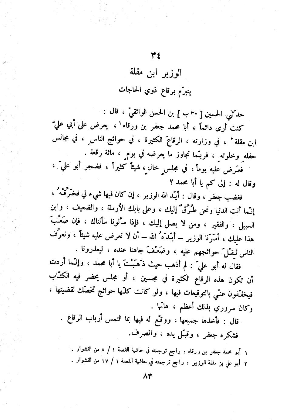 34 الوزير ابن مقلة يتبرّم برقاع ذوي الحاجات