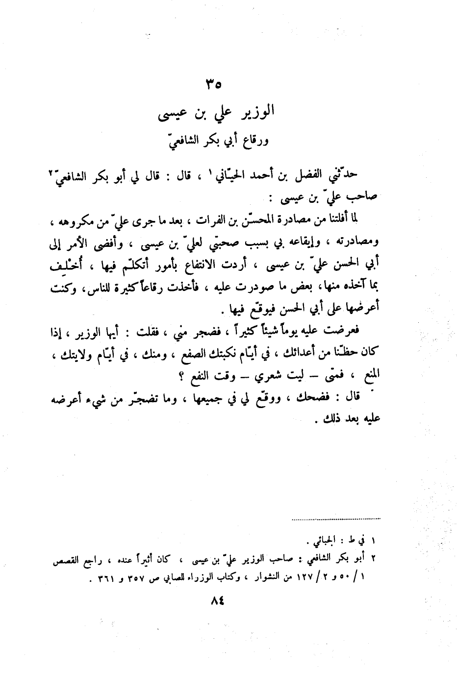 35 الوزير علي بن عيسى ورقاع أبي بكر الشافعيّ